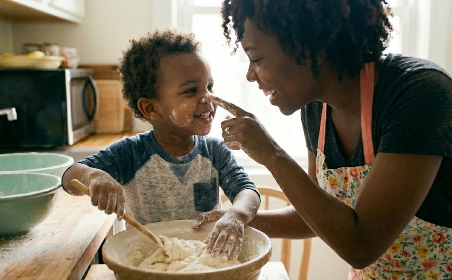 Their bodies learn through touch, their confidence grows through involvement, and their relationship with the adult deepens when they feel included. Working side-by-side with a caregiver gives children a sense of ownership that cannot be replaced by a perfectly frosted cookie.